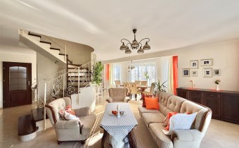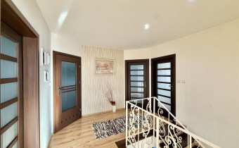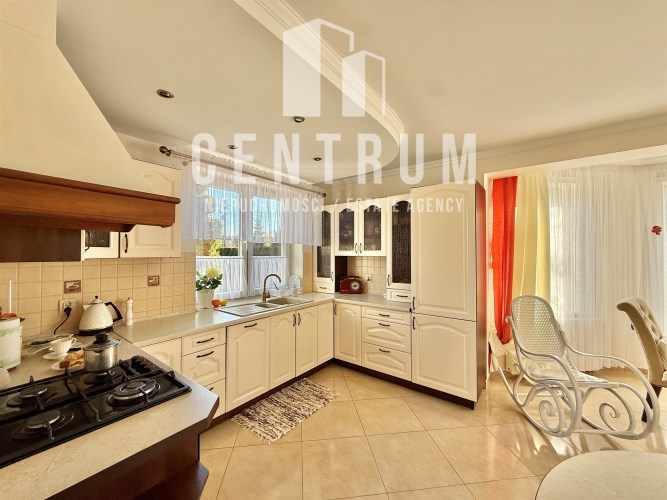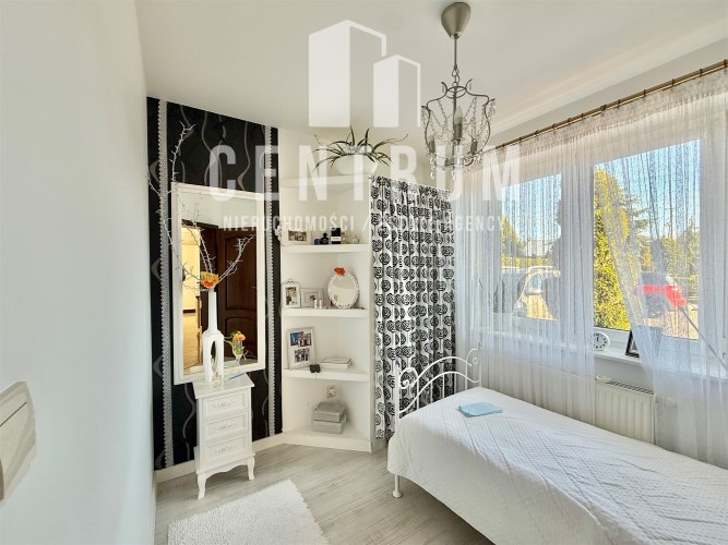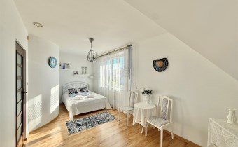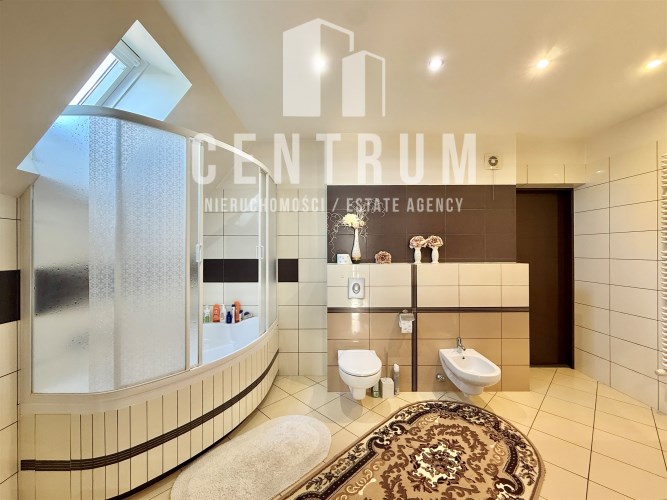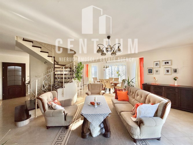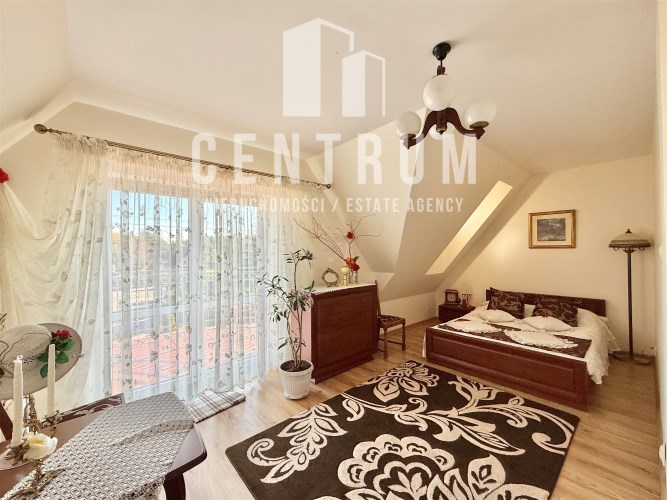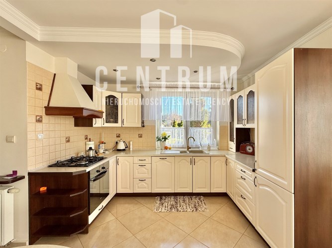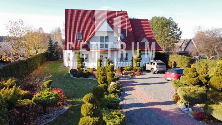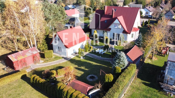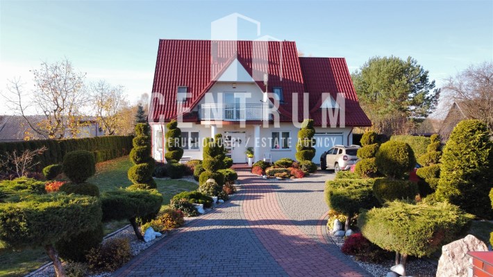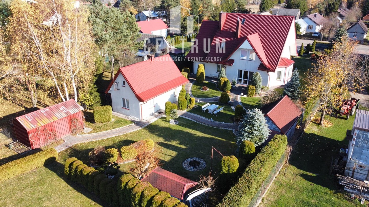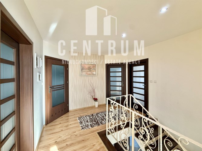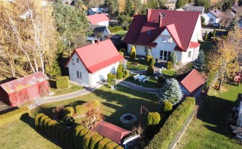 Powierzchnia użytkowa około 213 m2. Dom murowany, 2-kondygnacyjny w stylu klasycznym z garażem na jeden samochód. Składa się z 6 pokoi (dwóch dużych sypiania w tym jednej z balkonem oraz 4 mniejszych), salonu z kominkiem, jadalni, kuchni, 2 łazienek (wanna, prysznic), suszarni oraz kotłowni. Cały dom jest w bardzo dobrym stanie, nie wymaga żadnych nakładów finansowym.