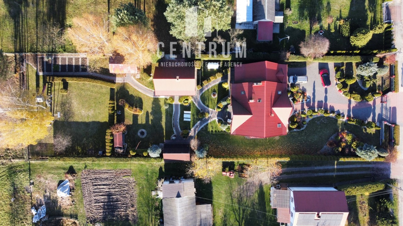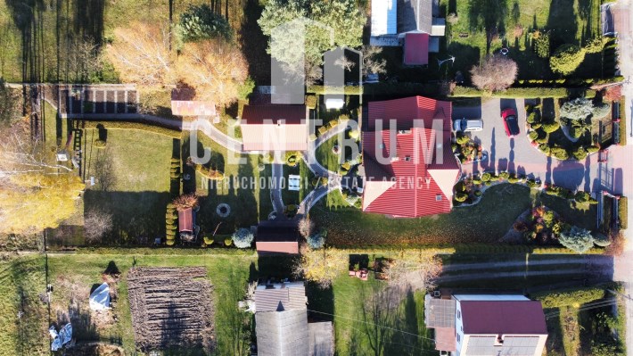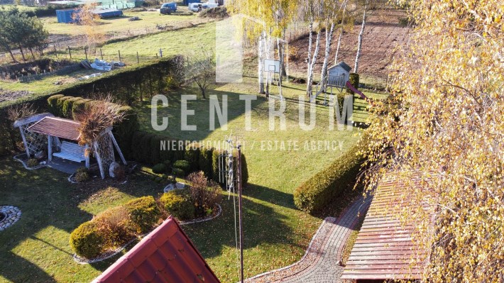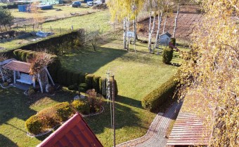 Działka w całości ogrodzona z bramą wjazdową na pilota. Powierzchnia działki 0,2 ha (20 arów). Działka pięknie zagospodarowana, alejki z kostki brukowej, liczne nasadzenia, wysokie tuje i świerki pełniące funkcję naturalnego ogrodzenia z obu stron działki.