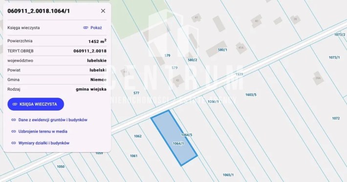 Działka przylega do drogi gminnej, co zapewnia wygodny dojazd.