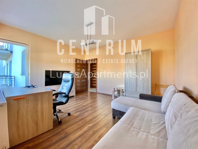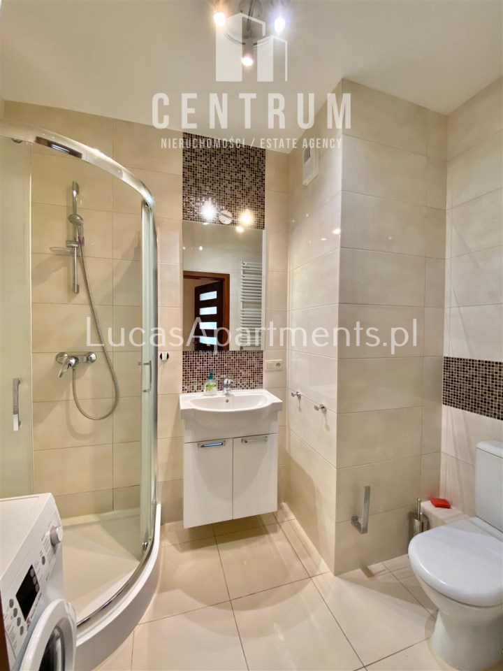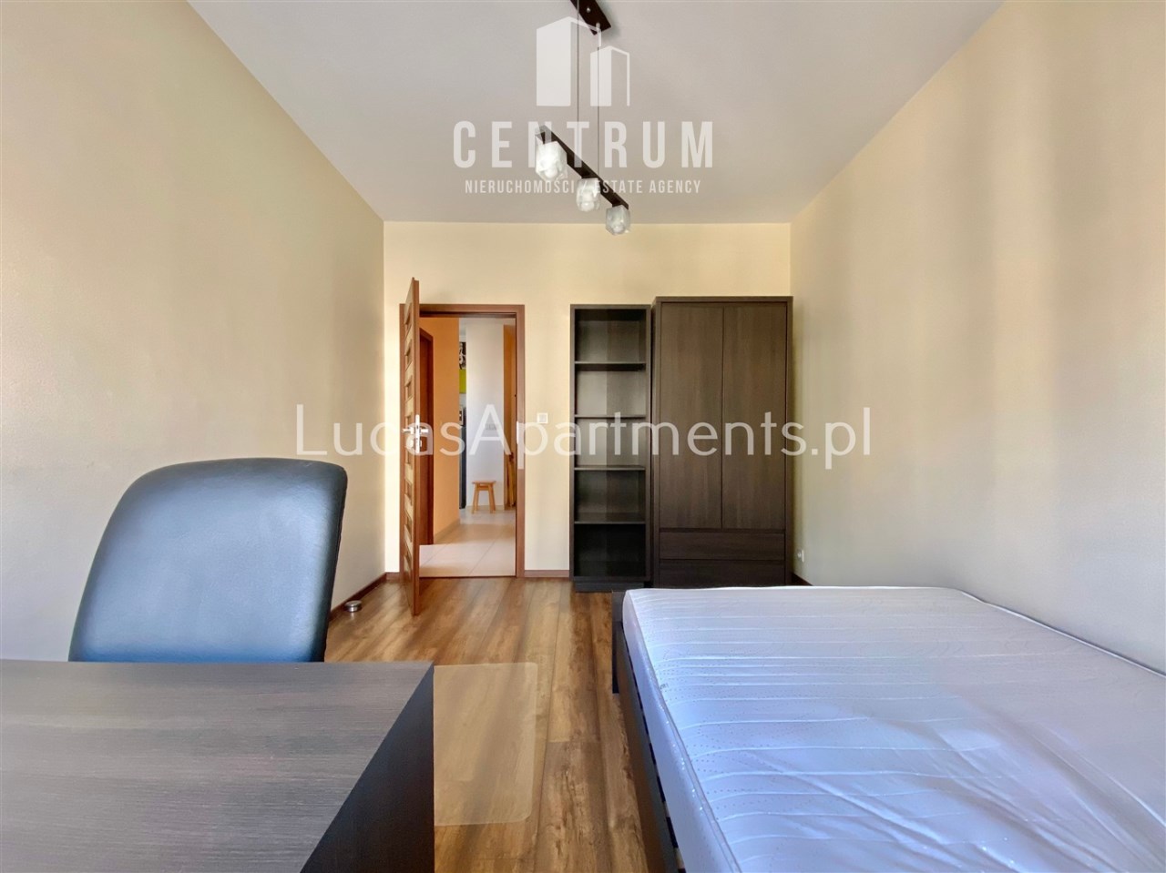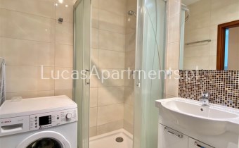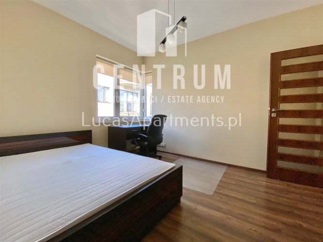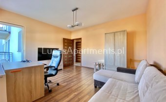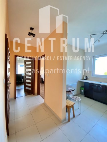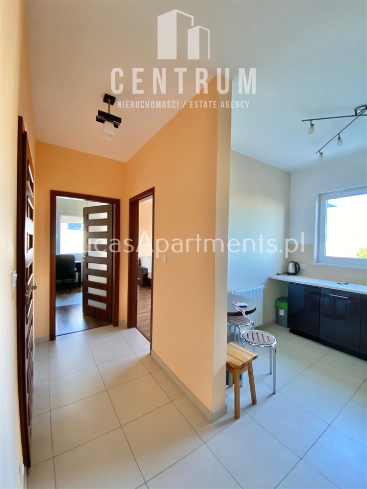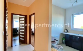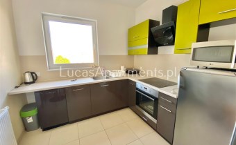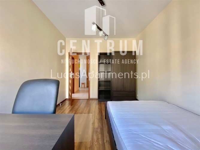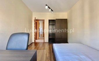 Piętro 3/4, powierzchnia 48 metrów kwadratowych składa się z dwóch oddzielnych pokoi, kuchni, łazienki z toaletą oraz przedpokoju. mieszkanie jest w pełni umeblowane i wyposażone w dobrym standardzie. Mieszkanie posiada balkon z którego rozciąga się przepiękny widok na miasto. W obu pokojach znajdują się łóżka, szafy, biurka z krzesłem. Kuchnia w zabudowie wyposażona w piekarnik, płytę indukcyjną, lodówko-zamrażarkę, mikrofalówkę, okrągły stół z krzesłami. W łazience kabina prysznicowa, pralka, umywalka.