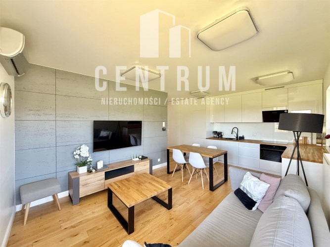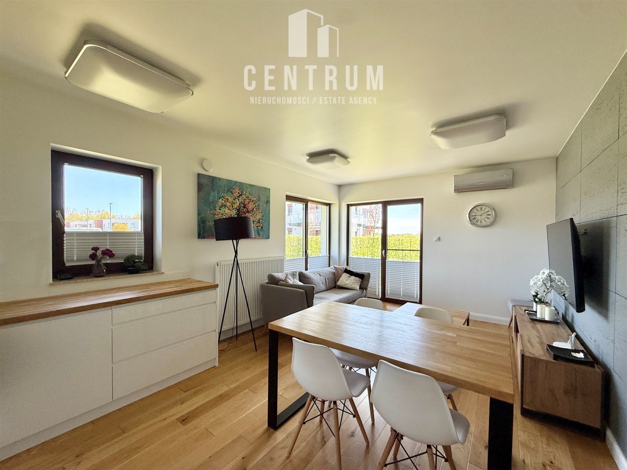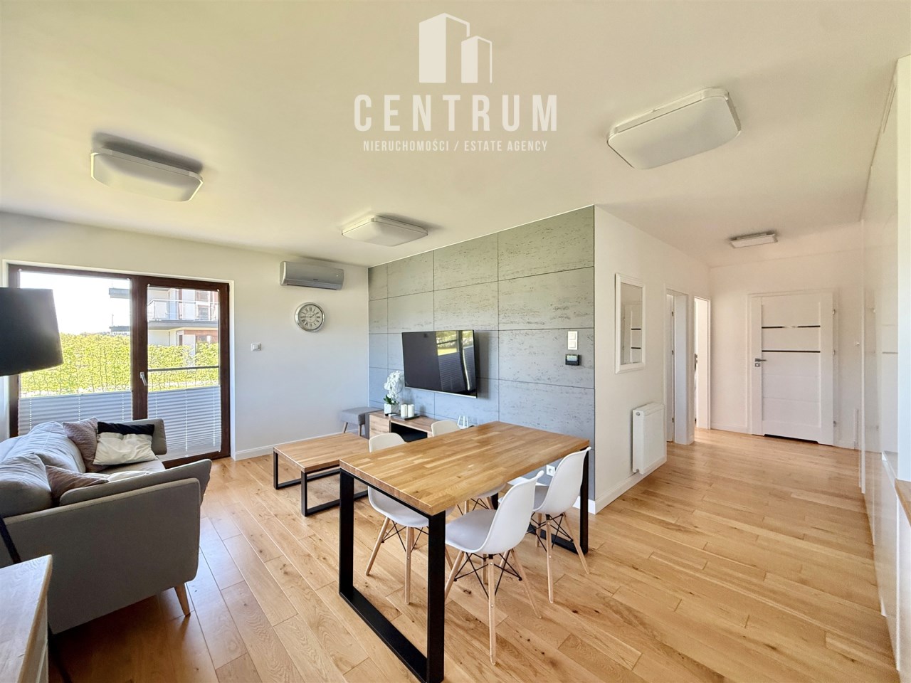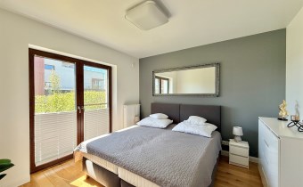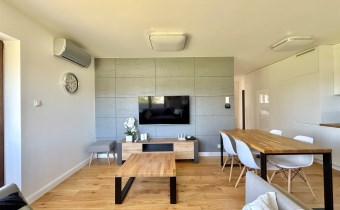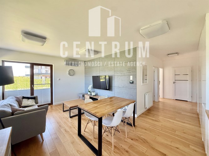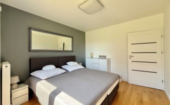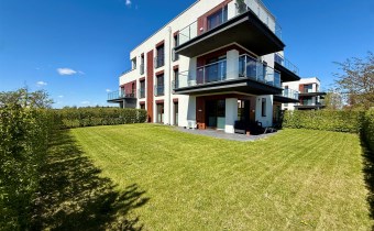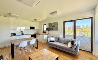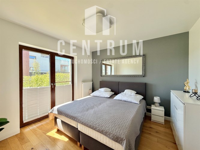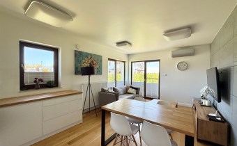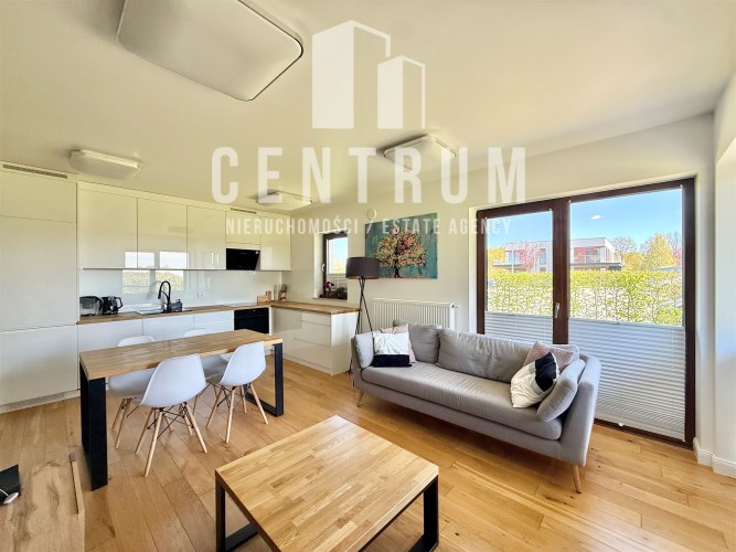 Apartament znajduje się na parterze w 2 piętrowym bloku (niska kameralna zabudowa), powierzchnia 53,73 m2 składa się z salonu z aneksem kuchennym, dwóch sypialni, łazienki z WC oraz przedpokoju. Mieszkanie z ogródkiem. Całe mieszkanie jest w pełni umeblowane i wyposażone w wysokim standardzie z klimatyzacją. Aneks kuchenny wyposażony jest w zmywarkę, piekarnik, płytę indukcyjną, lodówko-zamrażarkę. Obie sypialnie wyposażone są w 2 pojedyncze łóżko które można złączyć tworząc jedno duże łóżko. (idealnie rozwiązanie pod najem krótko terminowy). W przedpokoju znajdue się szafa. Łazienka wyposażona w kabinę prysznicową, umywalkę, pralkę.