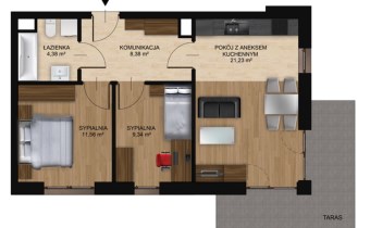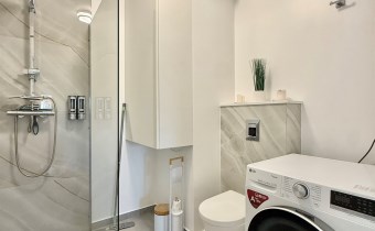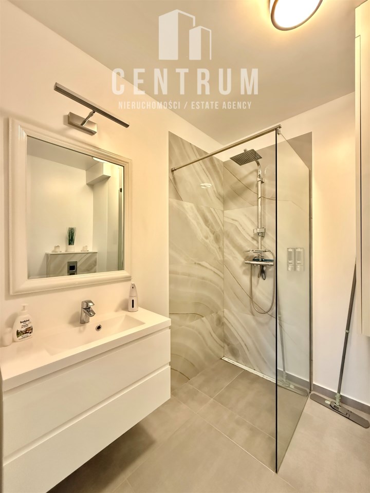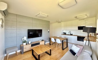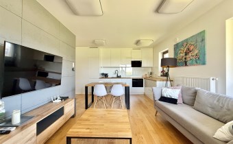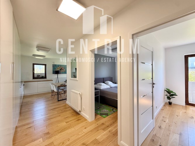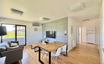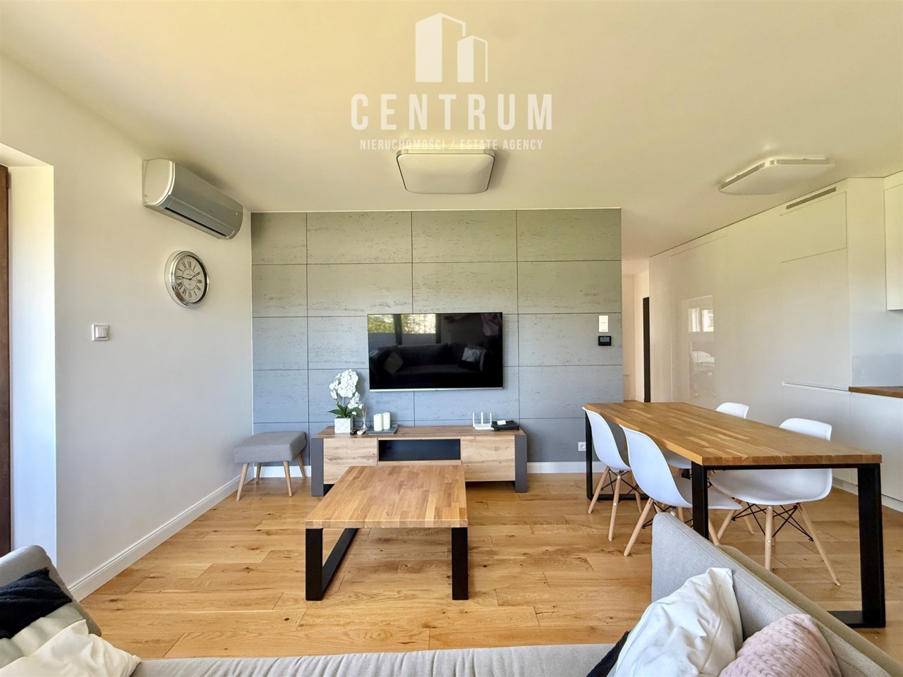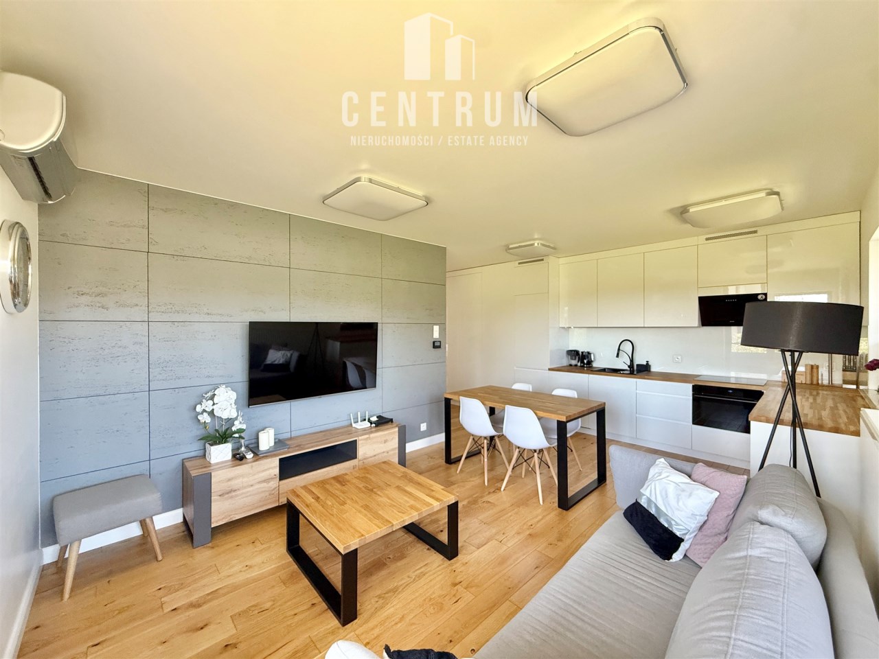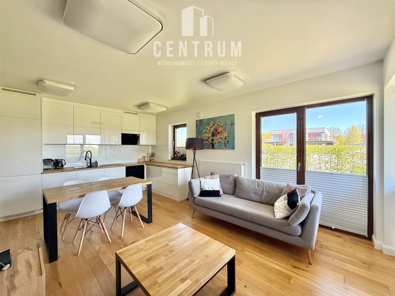 Apartament znajduje się na parterze w 2 piętrowym bloku (niska kameralna zabudowa), powierzchnia 53,73 m2 składa się z salonu z aneksem kuchennym, dwóch sypialni, łazienki z WC oraz przedpokoju. Mieszkanie z ogródkiem. Całe mieszkanie jest w pełni umeblowane i wyposażone w wysokim standardzie z klimatyzacją. Aneks kuchenny wyposażony jest w zmywarkę, piekarnik, płytę indukcyjną, lodówko-zamrażarkę. Obie sypialnie wyposażone są w 2 pojedyncze łóżko które można złączyć tworząc jedno duże łóżko. (idealnie rozwiązanie pod najem krótko terminowy). W przedpokoju znajdue się szafa. Łazienka wyposażona w kabinę prysznicową, umywalkę, pralkę.