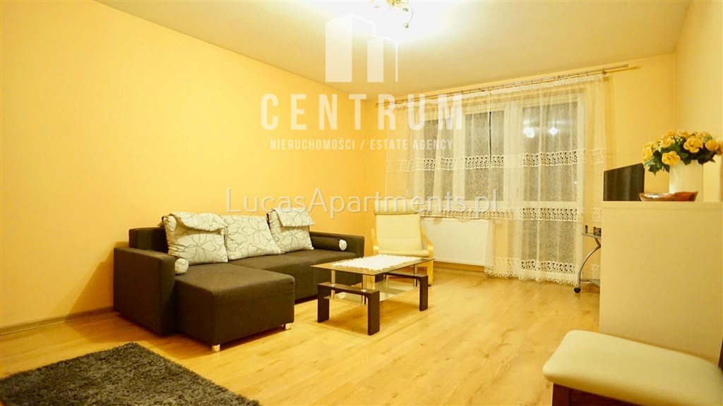 Mieszkanie znajduje się na 1 piętrze, powierzchnia 54 metry kwadratowe składa się z dwóch pokoi (sypialnia, salon), oddzielnej kuchni, łazienki z toaletą oraz przedpokoju. Mieszkanie posiada balkon, jest bardzo widne okna wychodzą na północ i południe. Całość jest w pełni umeblowana i wyposażona w dobrym standardzie. W sypialni duże wygodne łóżko, komoda, biurko z krzesłem. W salonie sofa rozkładana, regał na książki, telewizor. Kuchnia wyposażona w zmywarkę, piekarnik, płytę gazową, lodówko-zamrażarkę, stół z krzesłami. W przedpokoju znajduje się olbrzymia szafa w zabudowie. W łazience prysznic, umywalka, toaleta, pralka. Mieszkanie do zamieszkania od 15 luty. Ogrzewanie z sieci. Tanie z utrzymaniu. Bardzo gorąco polecam i zapraszam na prezentację.