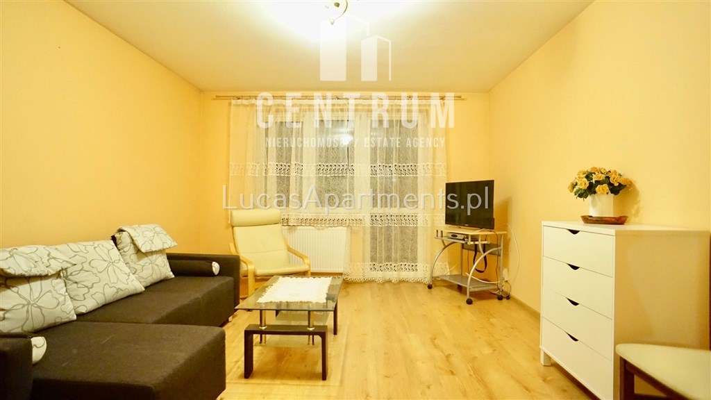 The apartment is located on the 1st floor, area of 54 square meters consists of two rooms (bedroom, living room), a separate kitchen, bathroom with toilet and hallway. Apartment has a balcony is fully furnished and equipped to a good standard. Bedroom has a large comfortable bed + a desk with a chair. In the living room is a sofa bed, coffee table, bookshelf, TV cabinet + TV. The kitchen is equipped with a dishwasher, oven, gas hob, fridge-freezer + table with chairs. In the hall there is a large, roomy built-in wardrobe. The bathroom has a shower, washing machine, toilet. Apartment available immediately! Cheap bills! Heating from the city. Perfect for a single person or a couple. Very highly recommended. Call today to arrange a viewing.