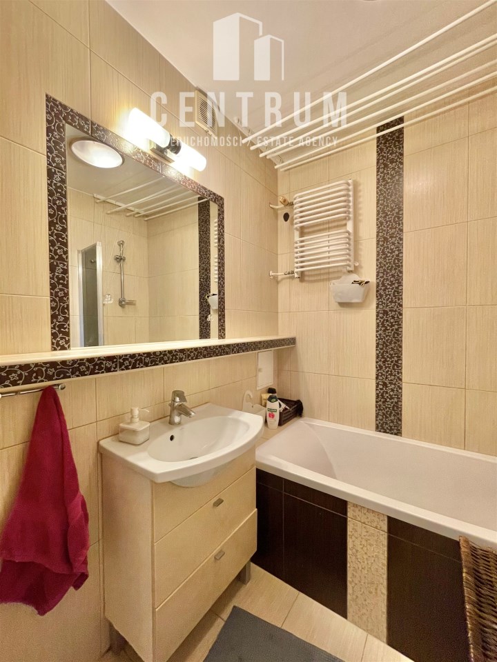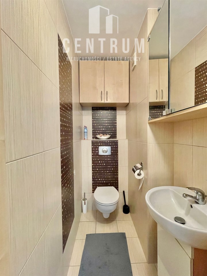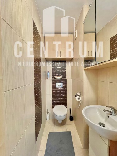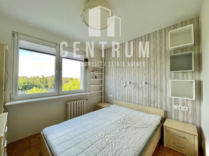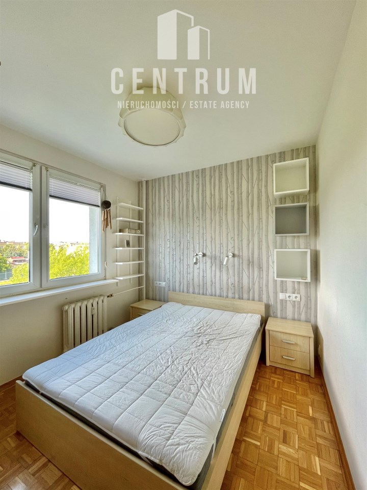 Piętro 5/6, powierzchnia 60 m2 składa się z dużego salonu, dwóch sypialni, dużej oddzielnej kuchni, łazienki, oddzielnej toalety oraz przedpokoju. Mieszkanie posiada balkon wychodzący na stronę południową. Całe mieszkanie jest w pełni umeblowanie i wyposażone w dobrym standardzie, jasne, funkcjonalnie urządzone. W salonie znajduje się duża narożna rozkładana kanapa, stół z krzesłami, komoda, szafka pod TV oraz telewizor. W pokojach łóżka, szafy, biurka z krzesłem. W przedpokoju znajduje się duża szafa w zabudowie. Kuchnia wyposażona zmywarkę, piekarnik, płytę gazową, lodówkę zamrażarkę. W łazience, wanna, pralka. Ogrzewanie oraz ciepła woda z sieci miejskiej zaliczkowania w czynszu do limitu w cenie. Czynsz administracyjny wliczony w cenę najmu.