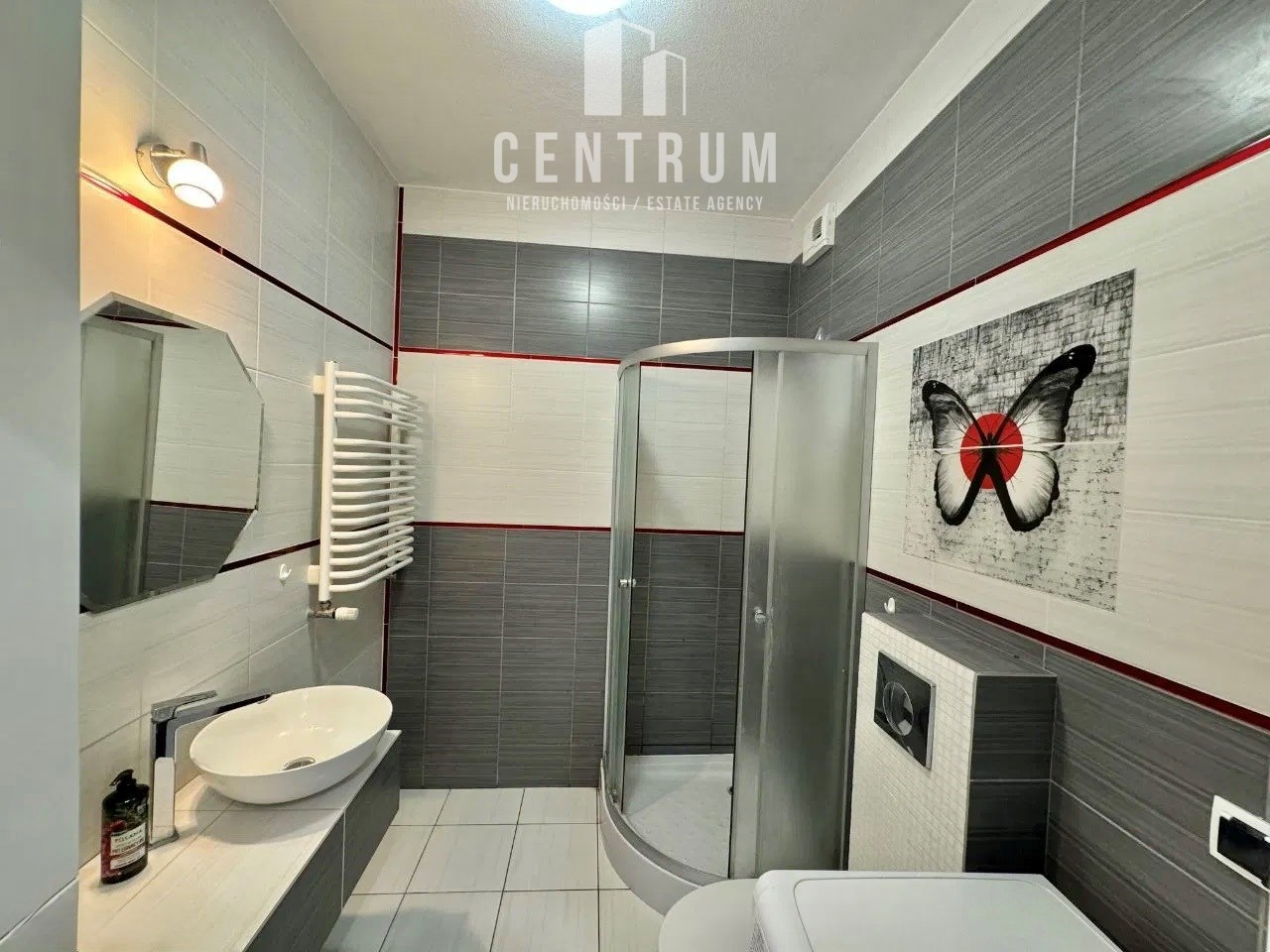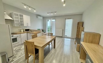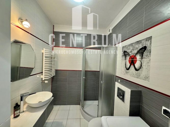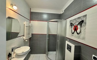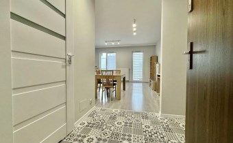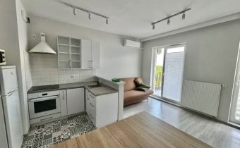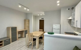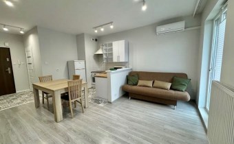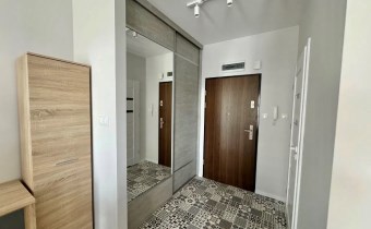 Piętro 2, powierzchnia 30 m2 składa się z pokoju z aneksem kuchennym, łazienki z toaletą oraz przedpokoju. Mieszkanie posiada balkon. Całe mieszkanie jest w pełni umeblowane i wyposażone. W tym roku została założona klimatyzacja. W salonie rozkładana sofa, stół z krzesłami, szafka pod TV, biurko i szafa. Druga duża szafa w zabudowie znajduje się w przedpokoju. Kuchnia wyposażona w zmywarkę, piekarnik, płytę indukcyjną, lodówko-zamrażarkę. Łazienka wyposażona w kabinę prysznicową, pralkę.