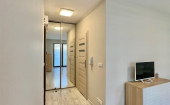 Mieszkanie znajduje się na parterze, powierzchnia 30 m2 składa się z dużego pokoju, kuchni, łazienki z toaletą oraz niewielkiego przedpokoju z dużą szafą w zabudowie. Kuchnia w nowoczesnej zabudowie wyposażona w dużą zmywarkę, piekarnik, płytę indukcyjną, lodówko-zamrażarkę. W łazience kabina prysznicowa oraz pralka. W salonie stoi wygodna rozkładana kanapa, stół z krzesłami, dodatkowo dokupiony zostanie telewizor oraz komoda. Ogrzewanie oraz woda z sieci miejskiej zaliczkowana w czynszu do limitu w cenie. Dodatkowo płatny prąd według zużycia. Mieszkanie dostępne od 10 marca. Bardzo gorąco polecam i zapraszam na prezentację.