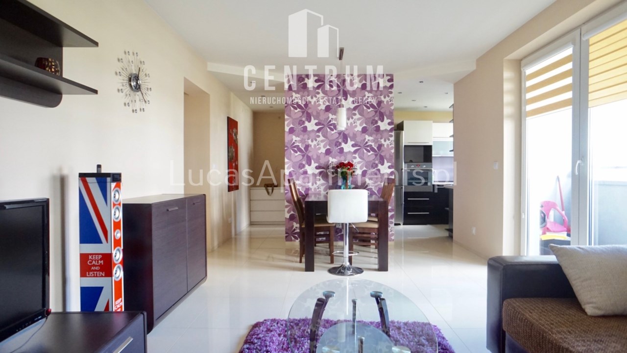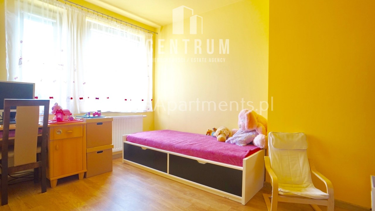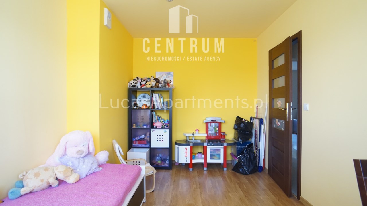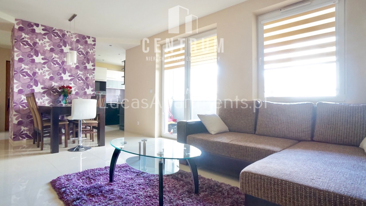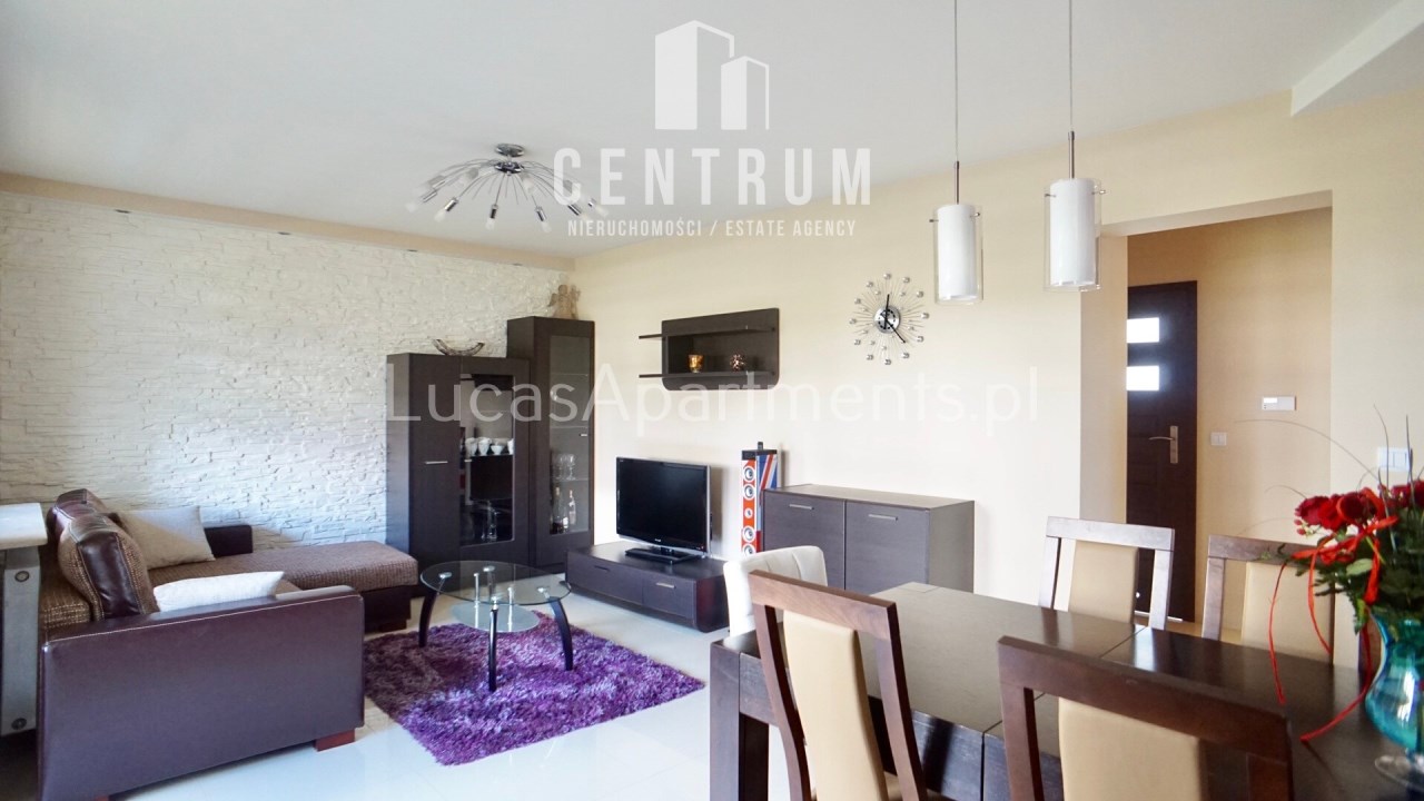 Mieszkanie znajduje się na wysokim parterze, powierzchnia 62 m2 składa się z dużego salonu częściowo otwartego na kuchnię, dwóch pokoi, łazienki z toaletą, przedpokoju oraz dużego balkonu. Całe mieszkanie w pełni umeblowane i wyposażone w wysokim standardzie z dbałością o szczegóły, dużo szaf, jeden z pokoi obecnie pełni funkcję pokoju dziecięcego ale może zostać doposażone pod klienta, w sypialni duże wygodne łóżko + duża szafa. Kuchnia w nowoczesnej zabudowie wyposażona w zmywarkę, piekarnik, płytę indukcyjną, lodówko-zamrażarkę. W salonie duża narożna rozkładana kanapa, stolik kawowy, komoda, stół z krzesłami, telewizor. Łazienka wyposażona w wannę z deszczownicą + pralkę. W okolicy sklepy (Stokrotka, Lidl) szkoła, place zabaw, boisko, przystanek autobusowy. Mieszkanie dostępne od zaraz. Do obejrzenia w każdej chwili. Bardzo gorąco polecam i zapraszam na prezentację!