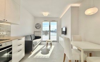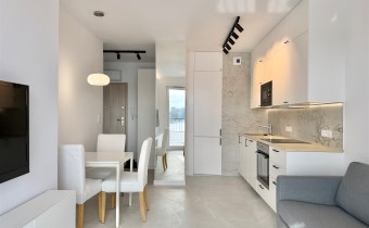 Piętro 4/5, powierzchnia 36 metrów kwadratowych składa się z salonu z aneksem kuchennym, sypialni, łazienki z WC oraz przedpokoju. Całe mieszkanie jest w pełni umeblowane i wyposażone w wysokim standardzie z dbałością o szczegółu, bardzo funkcjonalne! W sypialni znajduje się duże łóżko, biurko z krzesłem, szafa. Aneks kuchenny wyposażony w zmywarkę, piekarnik, płytę indukcyjną, lodówko-zamrażarkę, mikrofalówkę. Łazienka wyposażona w kabinę prysznicową, umywalkę, pralkę. Na wyposażeniu również telewizor typu smart TV. Ogrzewanie oraz ciepła woda z sieci miejskiej, zaliczkowane w czynszu administracyjnym.