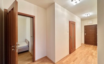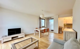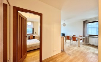 Apartment is located on the 2nd floor, area of 70 square meters consists of a large living room with an open kitchen, two bedrooms, bathroom with toilet and a hall. Apartment has a balcony. The whole apartment is fully furnished and equipped to a high standard. Living room has a sofa bed, coffee table, TV + TV cabinet, table with chairs and a chest of drawers. In both bedrooms is a large comfortable bed, wardrobe + desk with chair. The kitchen in a modern furniture with stone countertops is equipped with a dishwasher, oven, induction hob, fridge-freezer and microwave. The bathroom has a shower, toilet, sink and washing machine. Heating and hot water up to the limit in the price - pre-paid in rent. Administrative fees is already included in the rental price. The apartment is available immediately. Very highly recommended. Call today to arrange a viewing.